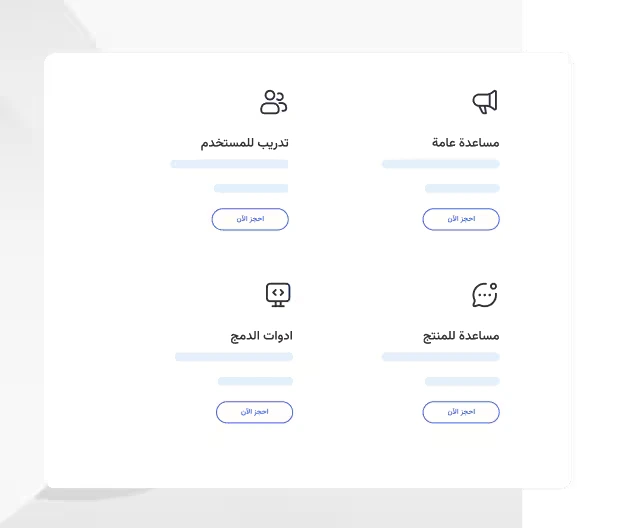 خلِّ عملاءك يحجزون نوع الدعم اللي يحتاجونه بالضبط — تدريب، دعم فني، مراجعة استخدام، أو مناقشة حساب — مباشرة من موقعك.